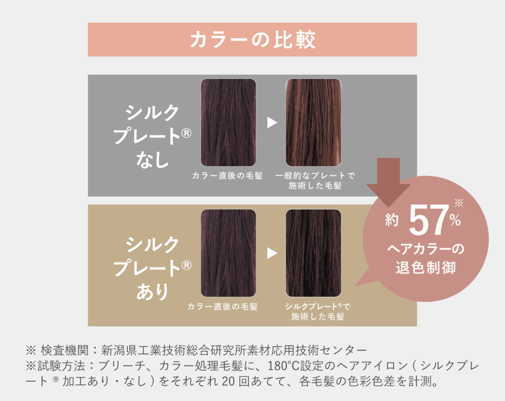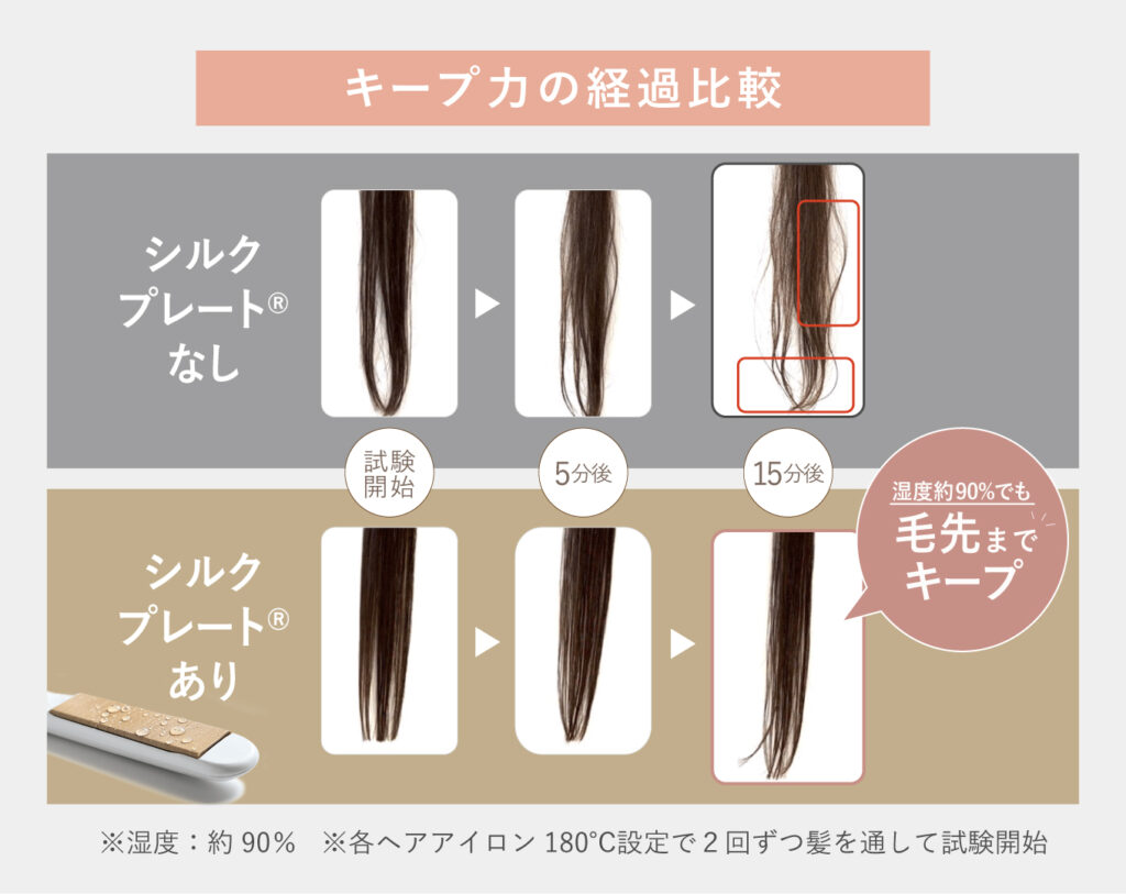 シルクプレート®の特徴は、しっとり、ツヤのある髪に仕上がるという点で知られていることが多いですが、実はキープ力にも長けているのです。