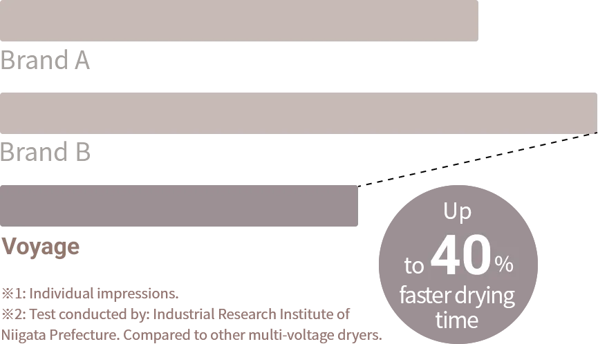 Compared to standard home-use dryers, it can cut drying time by up to 40%.*Despite its compact form, it delivers a surprisingly strong airflow—perfect for quick drying on busy mornings or late nights. Experience the unexpected power every day.