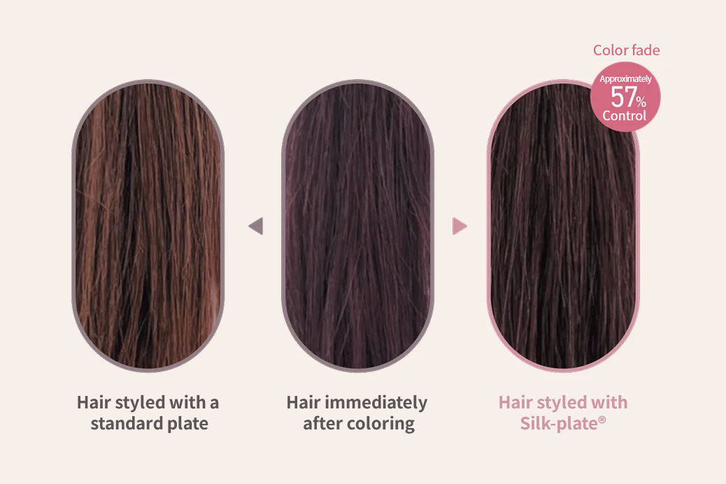 Compared to standard plates, Silk-plate®reduces color fade, maintaining vibrant hair color longer.