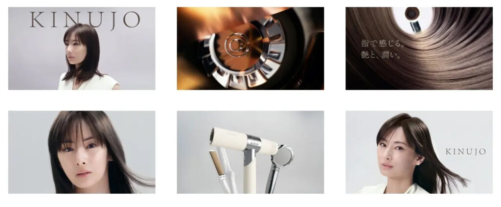 CMでは、北川景子さんの美しい髪を惜しみなく映し出すことによって、KINUJOのドライヤーがもたらす髪の艶と潤いを表現しています。毎日ドライヤーを使うたびに髪の在り方が変わることで、CMのコンセプトである「うつくしい人生を髪からかなえる。」様子を印象的に描きました。北川景子さんの透明感あふれる美しさと凛とした表情にご注目ください。