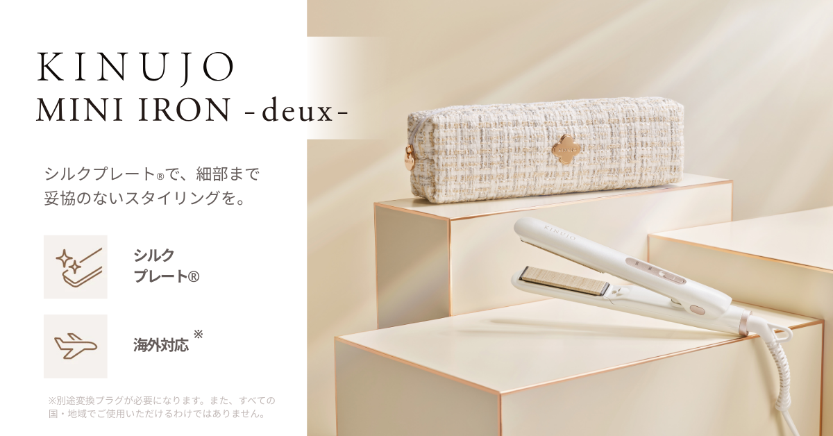 KINUJOのシルクプレート®は、髪の水分量を保ちながら熱を均一に届けるため、仕上がりの質感が非常にしなやかで、思わず触れたくなるような自然な艶が生まれます。
