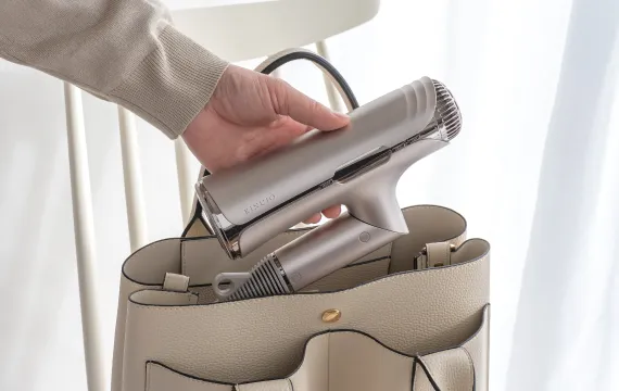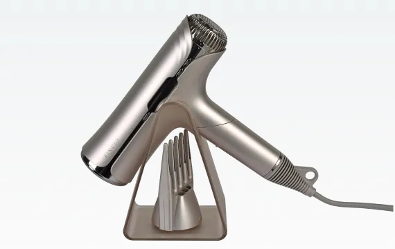 ドライヤー本体と専用ノズルを美しく収納できるスタンドが付属。