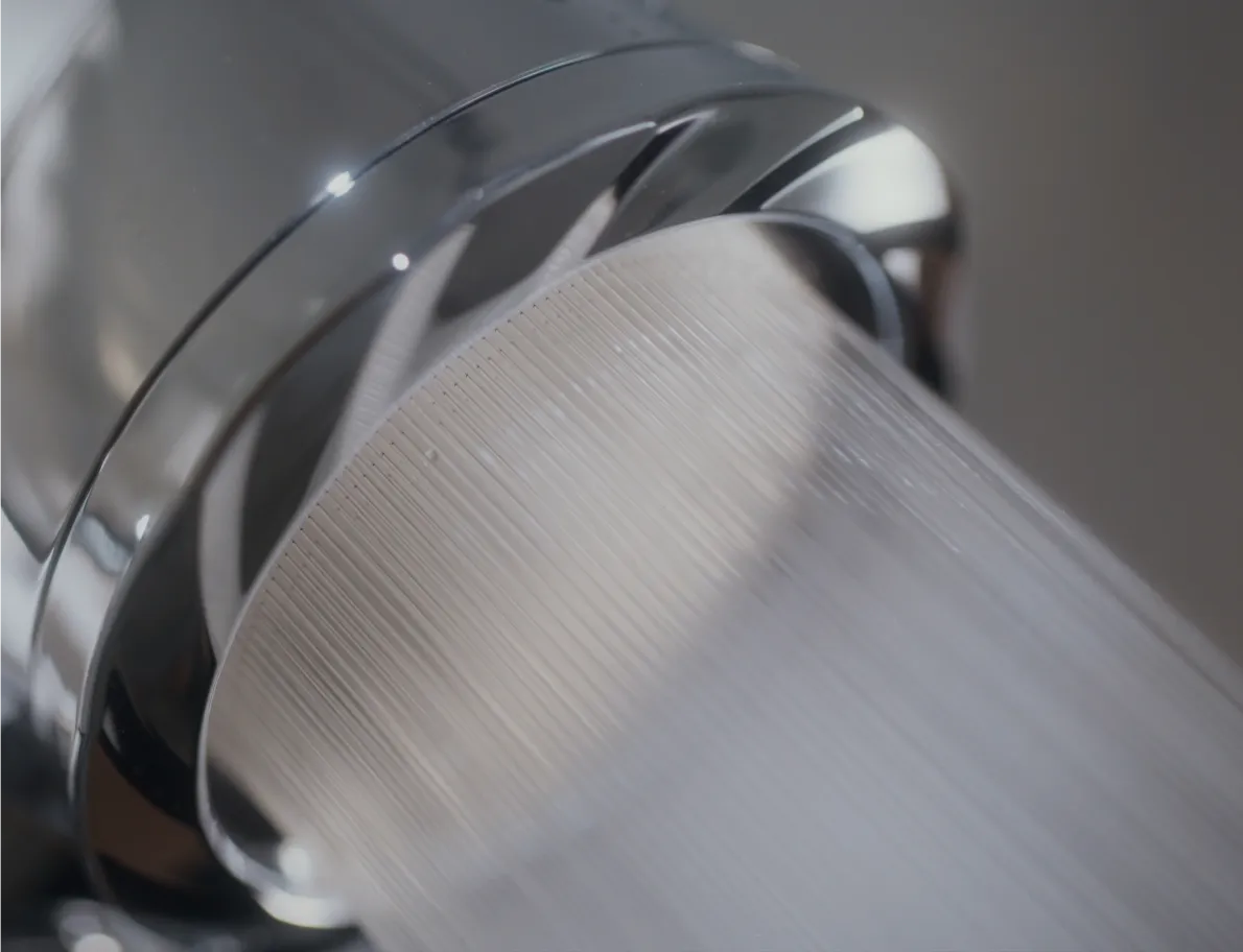 日本の精密加工技術が生んだ、真円ホール。水の粒まで整え、シルクのような、とろける肌あたりへ。