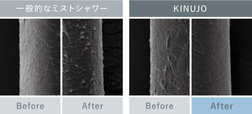 KINUJOのシルクリッチシャワーは、 髪にやさしく触れる設計で、キューティクルの剥がれや浮きを抑えてくれます。 キューティクルが整うことで、ヘアカラーの美しさもキープしやすくなります。