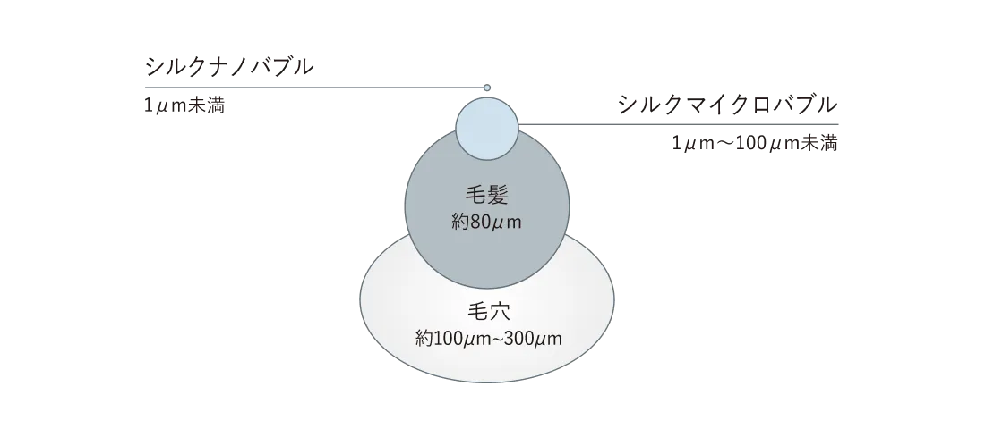 シルクマイクロバブルとシルクナノバブルとの効果で、肌を整える効果が期待できます。