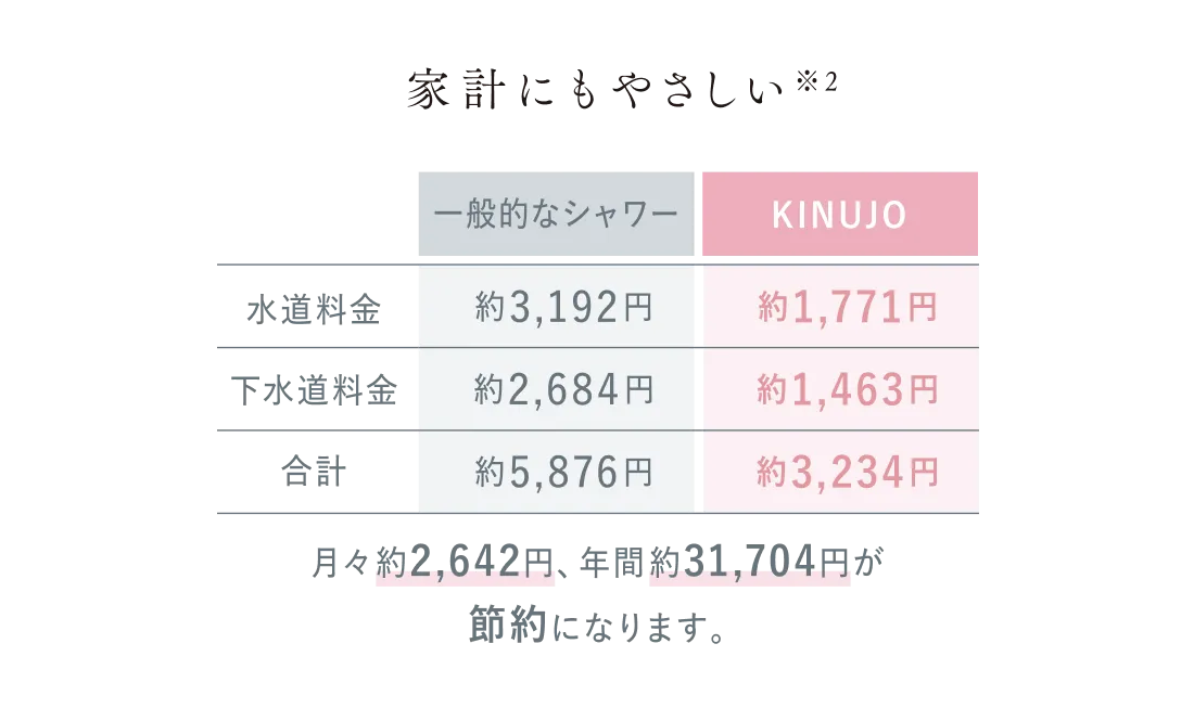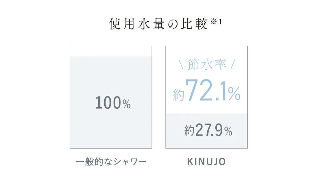 強すぎる水圧は、肌の乾燥を招く原因に。 KINUJOのシルクリッチ水流は、肌のうるおいを守り、 しっとり、なめらかな肌へ。
