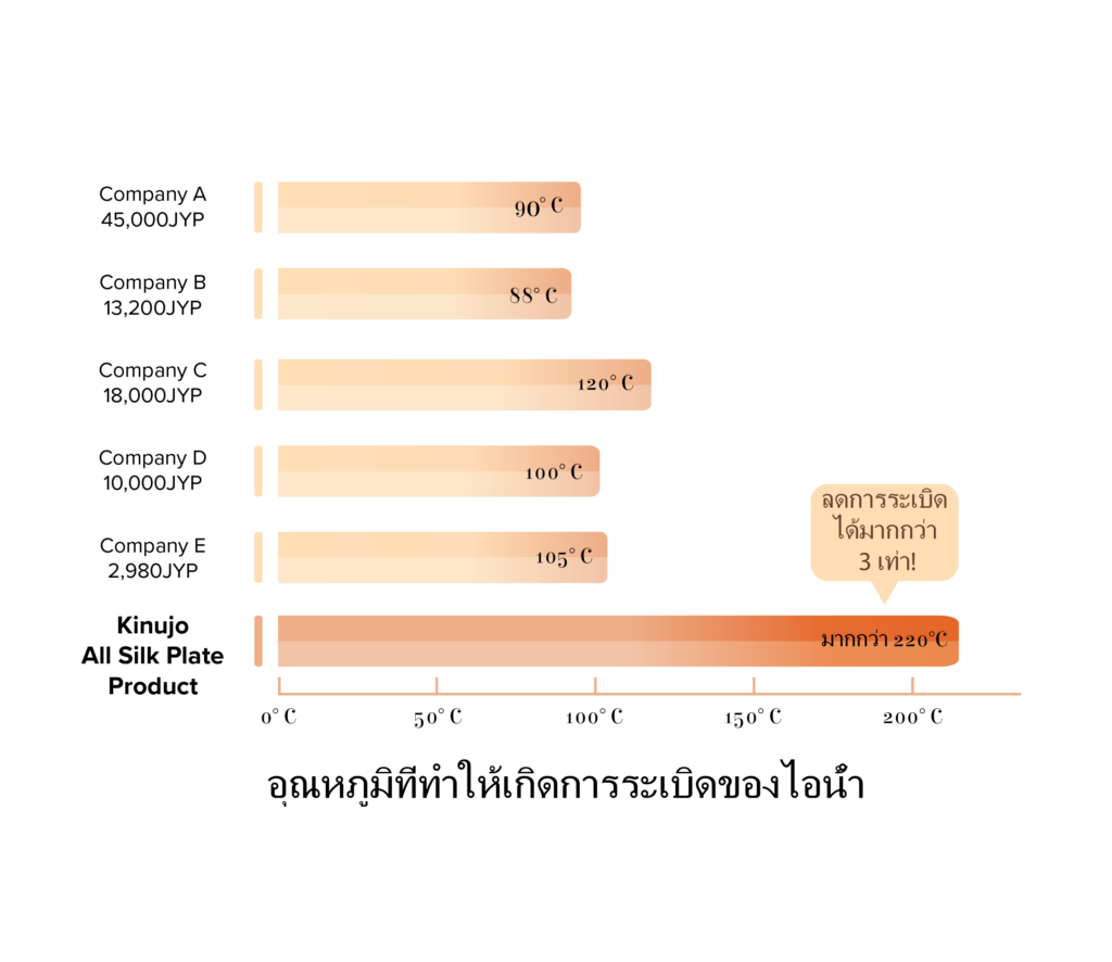 เครื่องหนีบผมทั่วไปมักเกิดการระเบิดของไอน้ำที่อุณหภูมิ100°C แต่หากใช้ SILKPLATE® จะไม่เกิดปฏิกิริยาดังกล่าว แม้จะมีอุณหภูมิสูงถึง 200°C นอกจากนี้ยังช่วยปกป้องความชุ่มชื้นของเส้นผมอีกด้วย