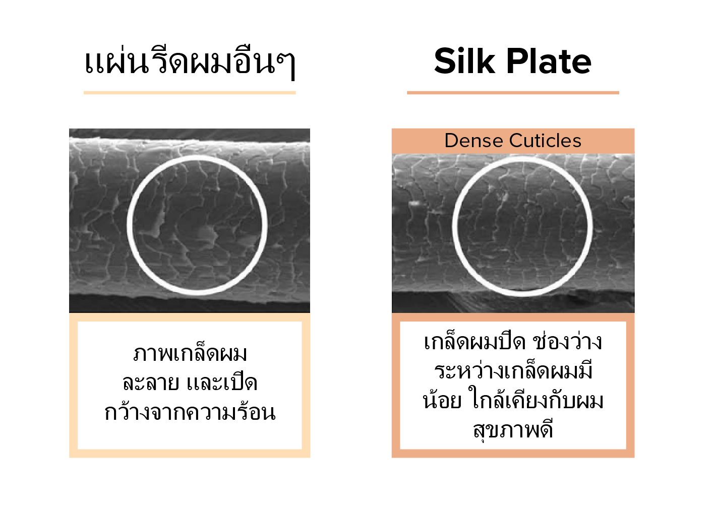 จากการที่เรามุ่งเน้นไปที่ “การป้องกันการระเบิดของไอน้ำ” ในเส้นผม และได้ทดลองใช้วัตถุดิบหลายชนิด สุดท้ายก็ได้ค้นพบวัตถุดิบใหม่อย่าง “SILK PLATE®.”