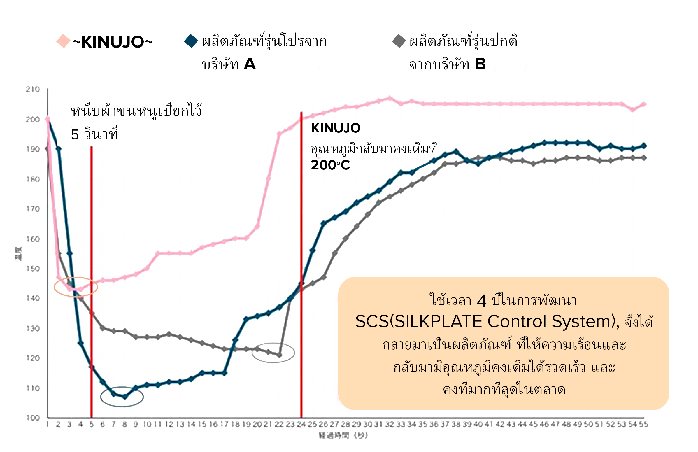 อุณหภูมิเพิ่มขึ้นถึง 180 ℃ ภายใน 20 วินาที